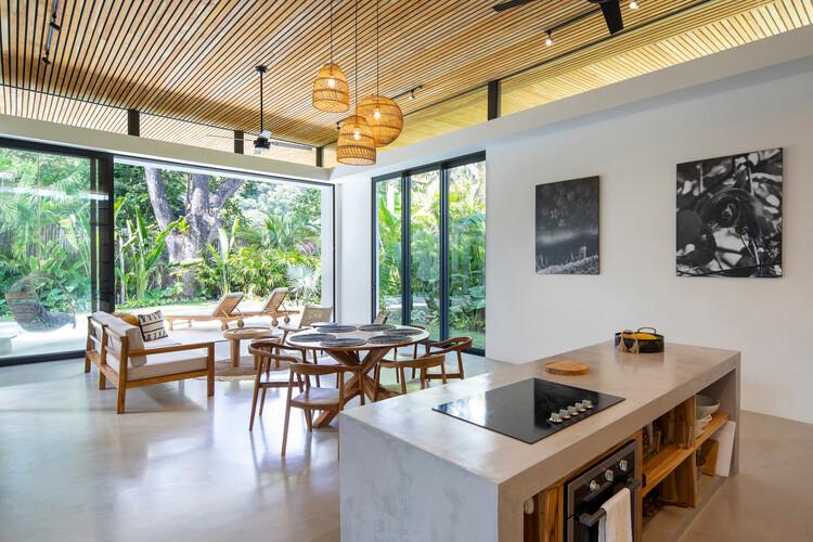 熱帶綠洲與柚木屋頂融合了內(nèi)外邊界,將人和自然連接起來(lái)。Saxe 工作室受委托在哥斯達(dá)黎加美麗的 Santa Teresa 小鎮(zhèn)設(shè)計(jì)兩座海灘別墅。我們決定將熱帶叢林融入房子,同時(shí)為人們創(chuàng)造生物舒適的享受戶外體驗(yàn)。